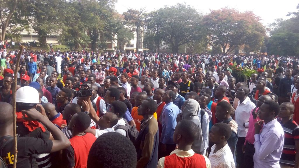 A strike is underway at Makerere University. The students are protesting against two issues; the first being the suspension of 15 of their colleagues over alleged theft and the second reason they are giving is the suspension of teaching by their lecturers.